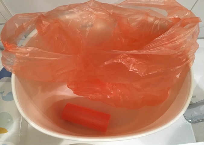 TIPP: Eine geniale Idee zum einfachen Nachfüllen von Müllsäcken habe ich mir nach der Geburt von Simon im Spital abgeschaut: Einfach die ganze Müllsack-Rolle unten in den Mülleimer legen und darüber den aktuellen Müllsack einspannen. Gerade bei einem Windelkübel, der öfters geleert wird, ist so immer der neue Müllsack in Griffweite und kann schnell gewechselt werden. Klingt vielleicht banal, ist aber echt sehr praktisch 😉